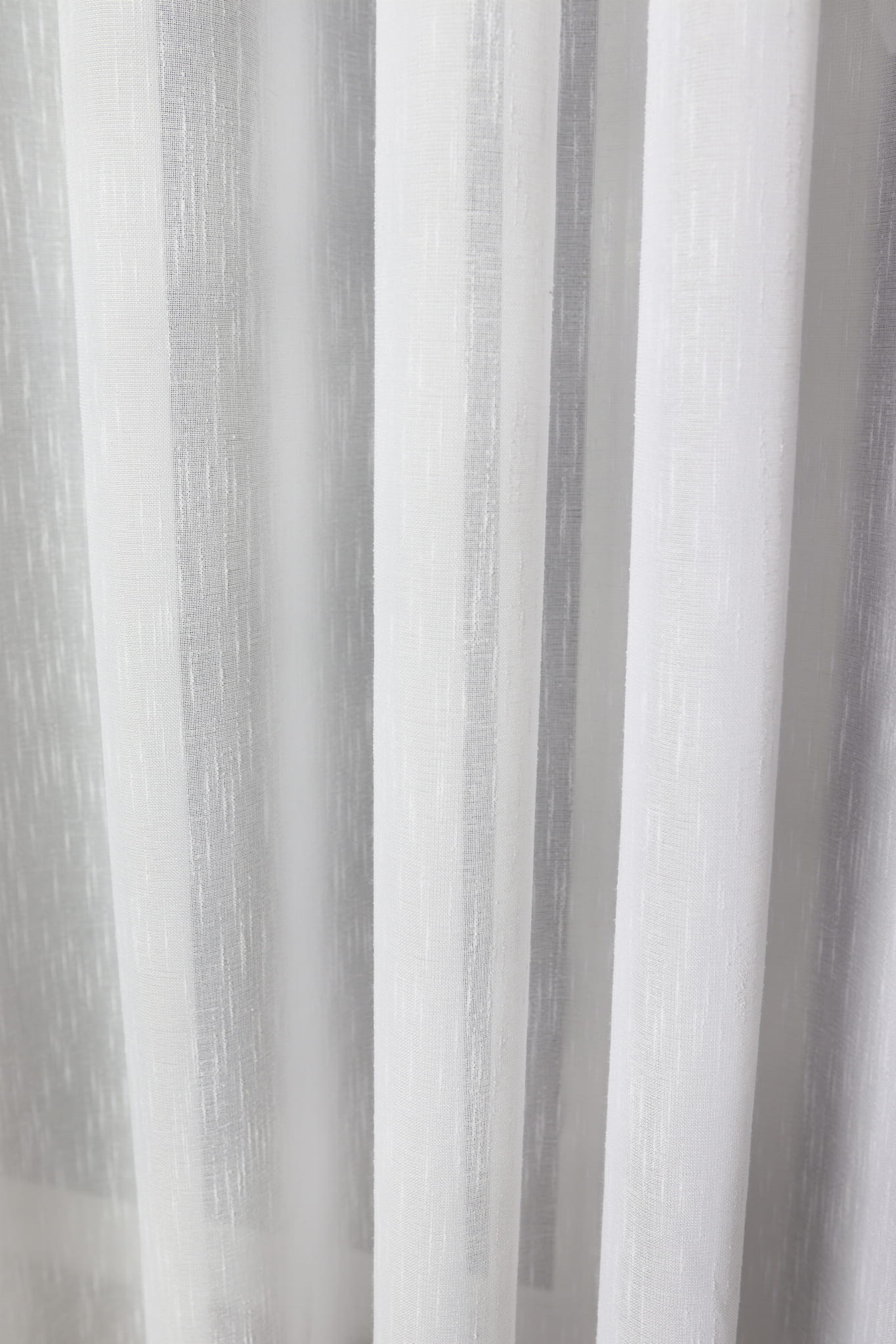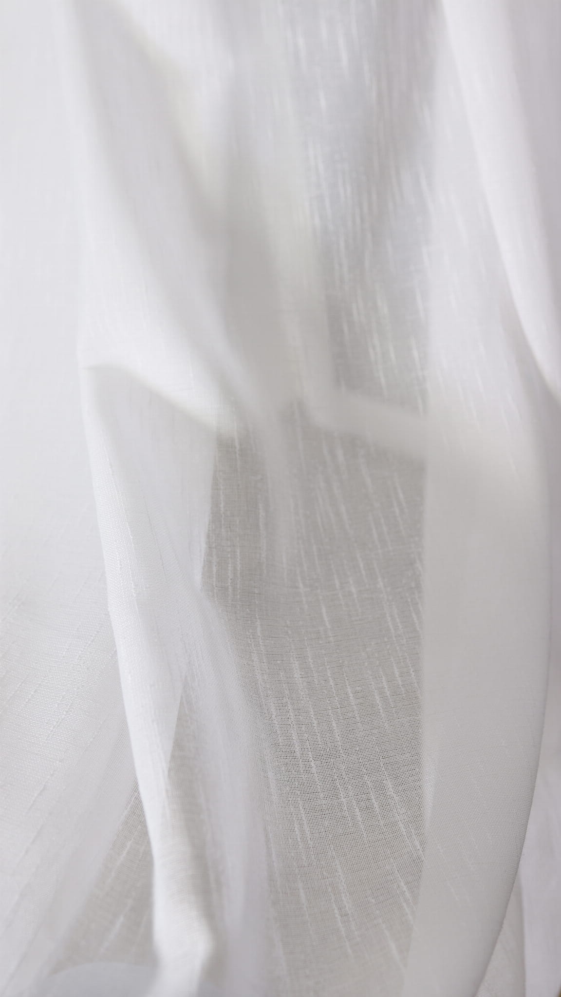 Tkanina jest miękka i przyjemna w dotyku. Zastosowanie wysokiej jakości poliestru sprawia, że produkt jest wyjątkowo praktyczny – firana nie wymaga prasowania. Wystarczy zawiesić ją wilgotną tuż po praniu, a ona samoistnie odzyska idealny kształt. Dolna krawędź została wykończona fabrycznie ołowianką (obciążnikiem), co gwarantuje, że tkanina naturalnie opada, zachowując nienaganną linię i elegancki wygląd.