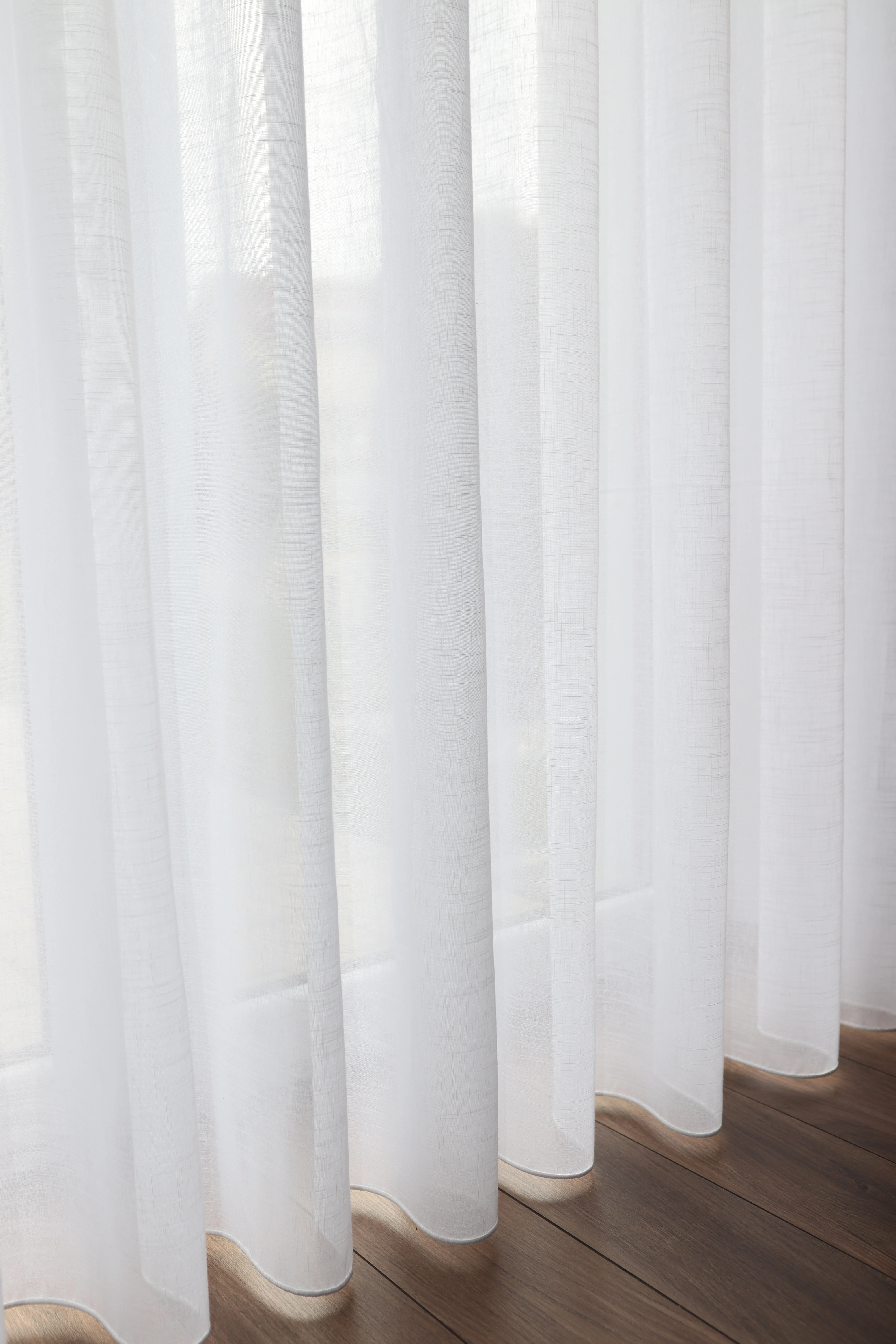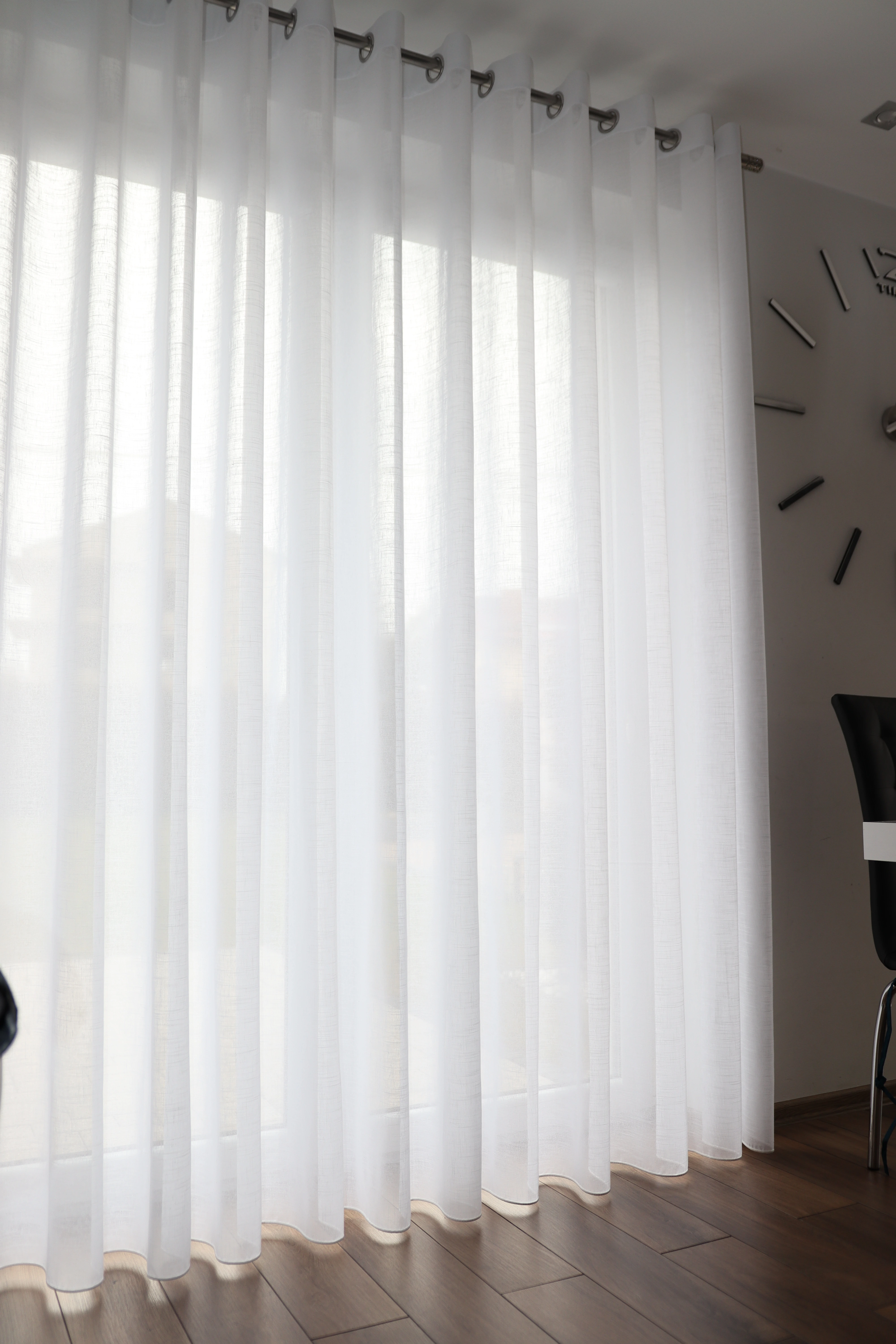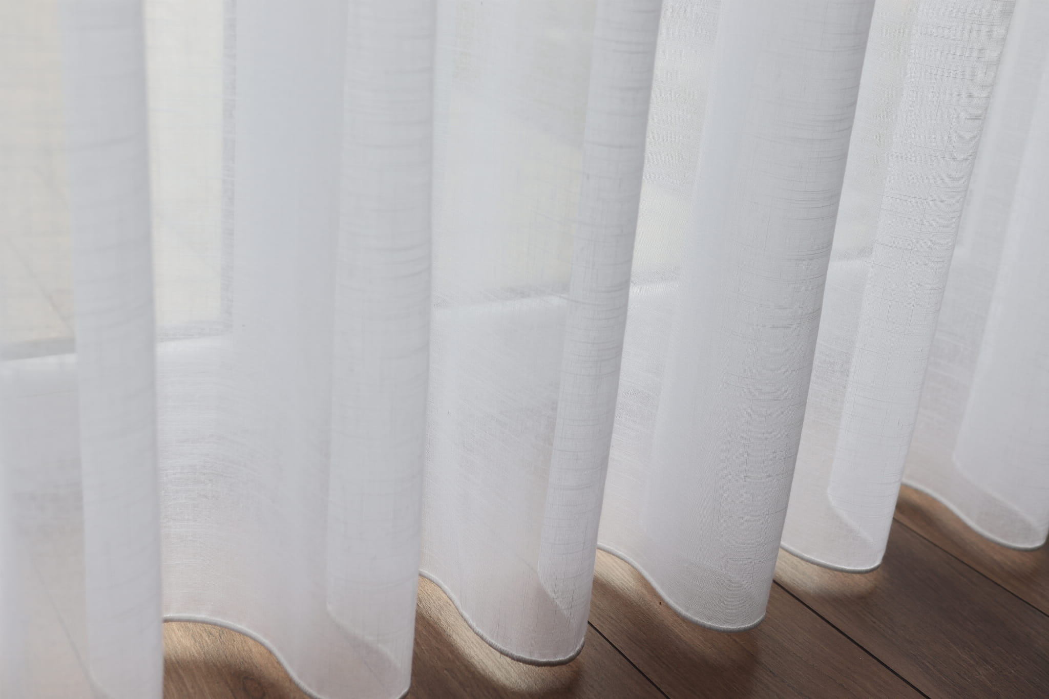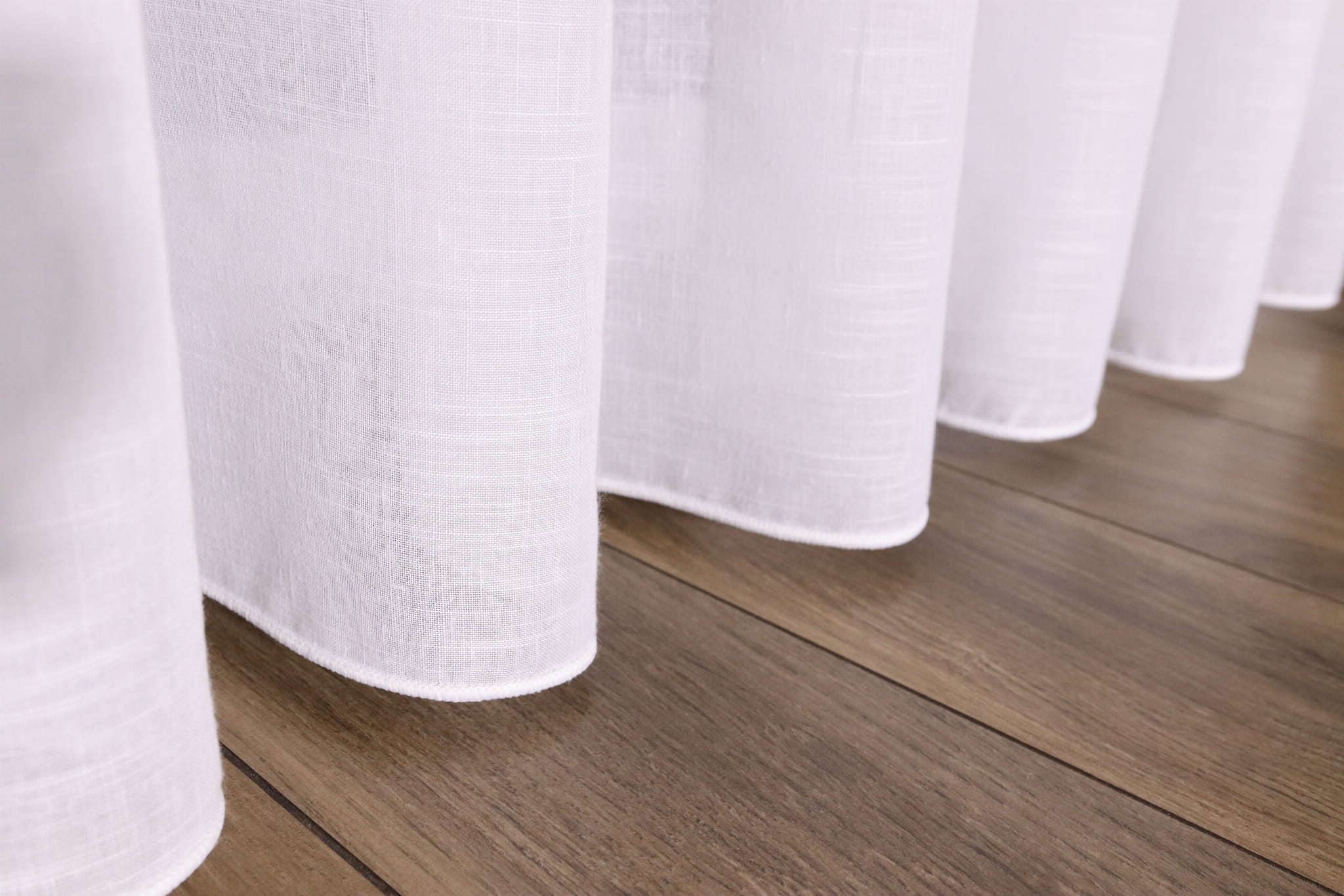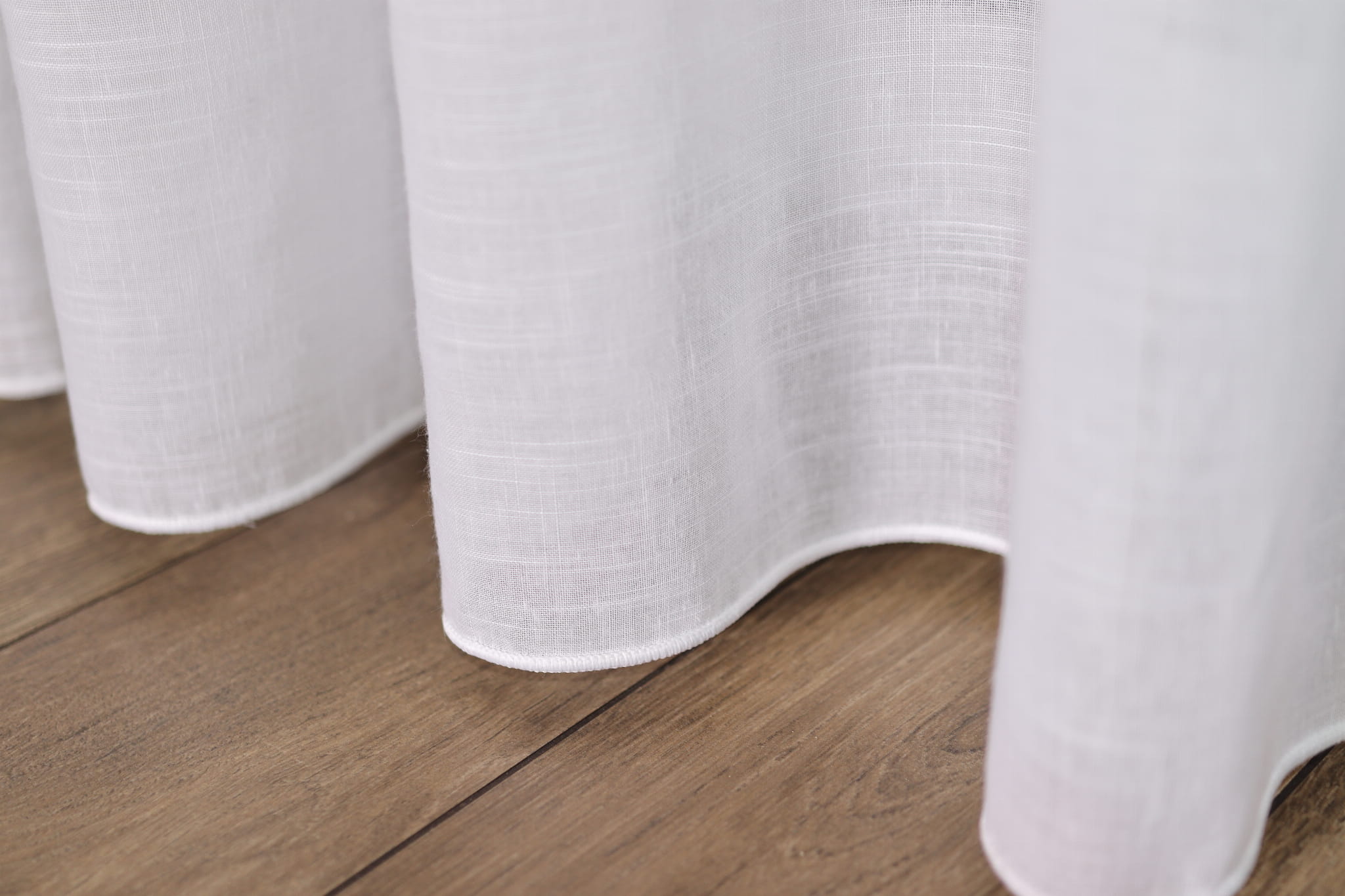 Gęsta struktura tkaniny w nieznacznym stopniu przepuszcza światło zapewniając prywatność, a jednocześnie nie przytłacza przestrzeni. Dół firany wykończony został obciążnikiem/ołowianką, który zapewnia idealne ułożenie tkaniny, dzięki czemu zawsze prezentuje się perfekcyjnie.
