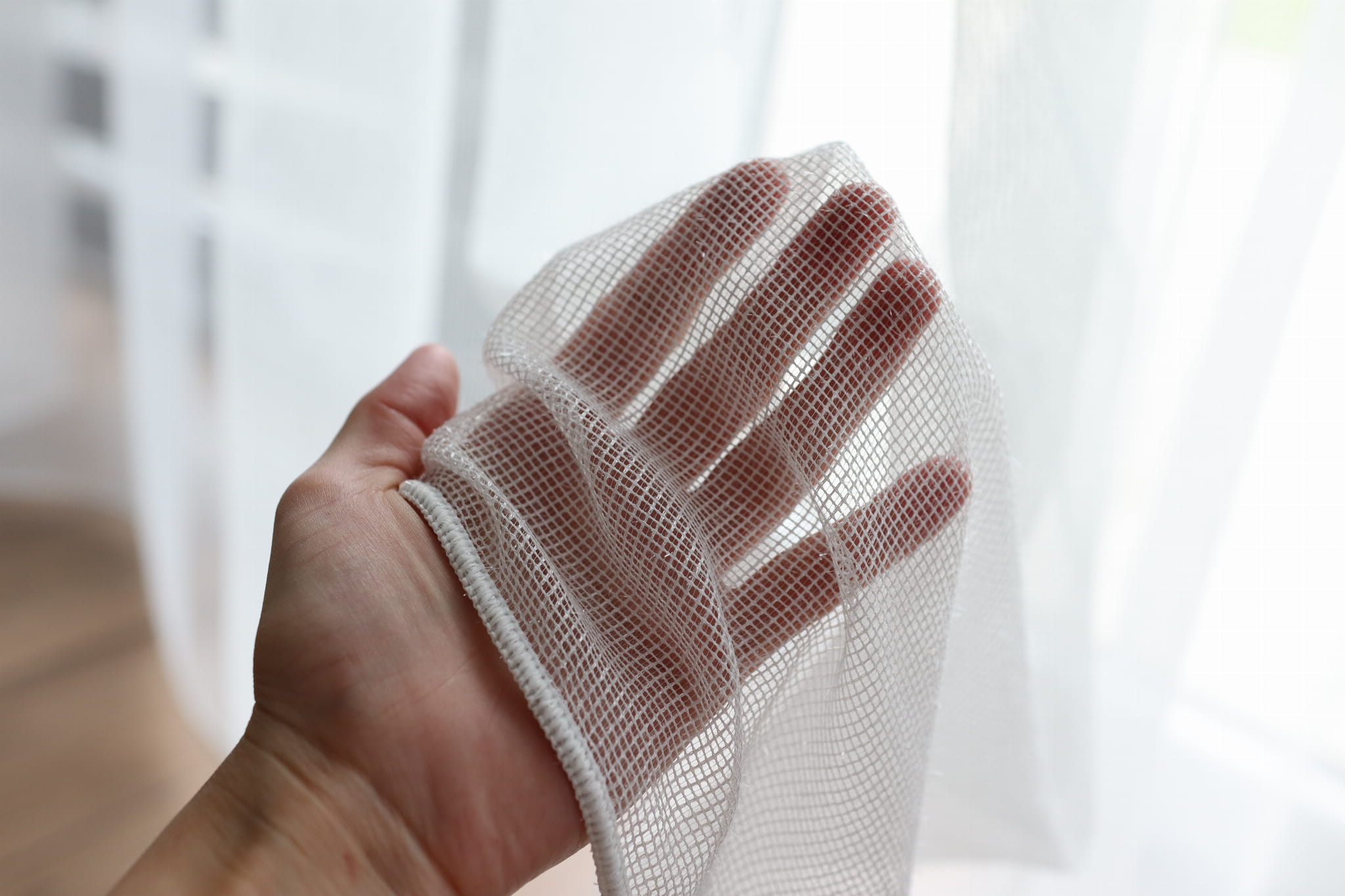 Wykonana z wysokiej jakości poliestru cechuje się trwałością, odpornością na zagniecenia i łatwością w pielęgnacji. Dolna krawędź firany wykończona została ołowianką. Dzięki niej tkanina układa się równo i miękko opada, zachowując elegancki wygląd niezależnie od sposobu zawieszenia.