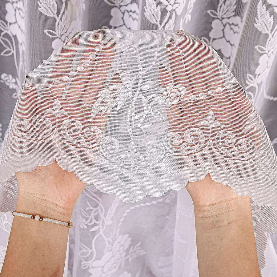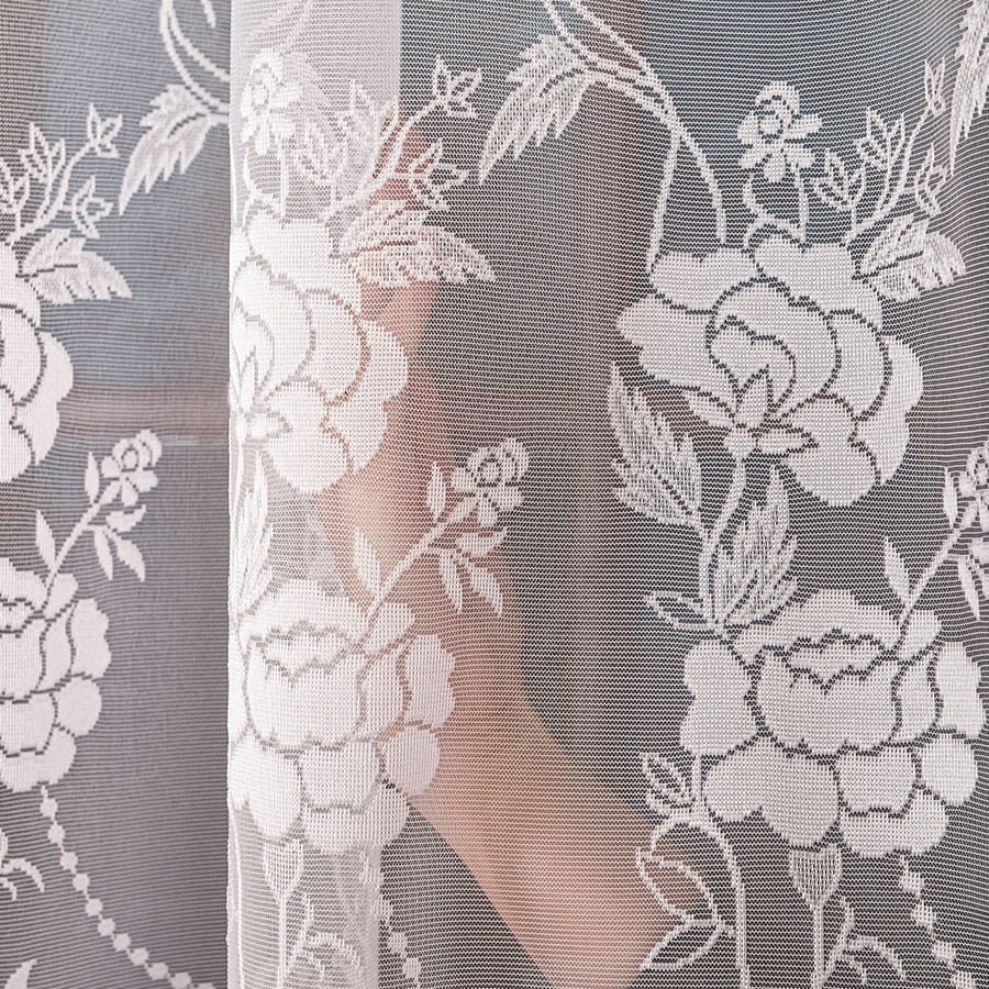 Firana żakardowa w klasycznym białym kolorze zachwyca wyjątkowym, kwiatowym wzorem, który zdobi całą powierzchnię tkaniny. Wykonana z lekkiej, a zarazem wytrzymałej tkaniny subtelnie osłania okno, nie ograniczając dostępu naturalnego światła. Włókna poliestrowe sprawiają, iż materiał jest trwały i łatwy w pielęgnacji. Nie wymaga prasowania - po praniu wystarczy wilgotną firanę zawiesić na karniszu.