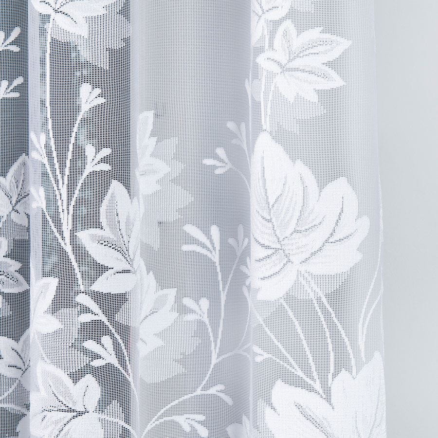 FIRANA ŻAKARDOWA BIAŁA Z ROŚLINNYM WZOREM NA METRY