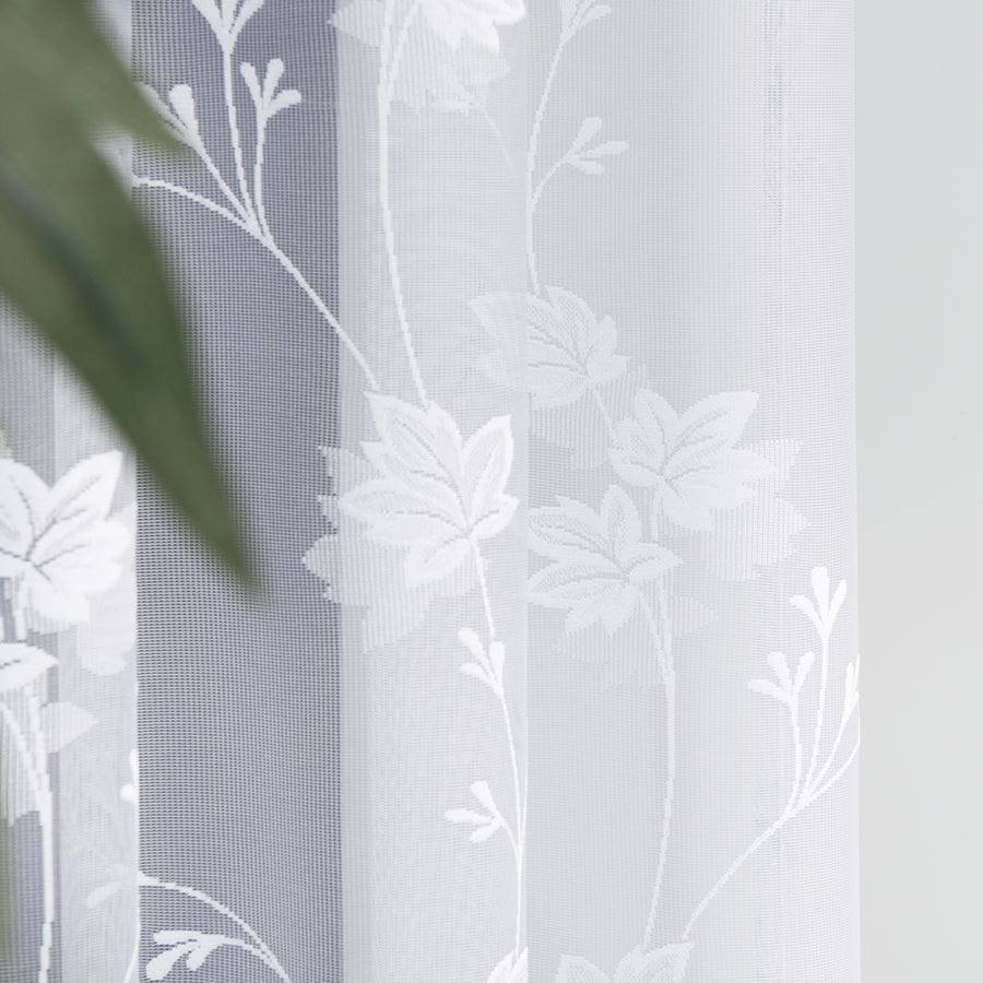 Firana żakardowa z wyjątkowym wzorem liści i drobnych gałązek na całej powierzchni tkaniny łączy w sobie klasykę i subtelny urok natury. Materiał jest delikatny, bardzo dobrze przepuszcza naturalne światło, tworząc ciepłą i przytulną atmosferę w pomieszczeniu. Nie wymaga prasowania – po praniu wystarczy wilgotną firanę zawiesić na karniszu, a sama ułoży się w elegancki sposób.