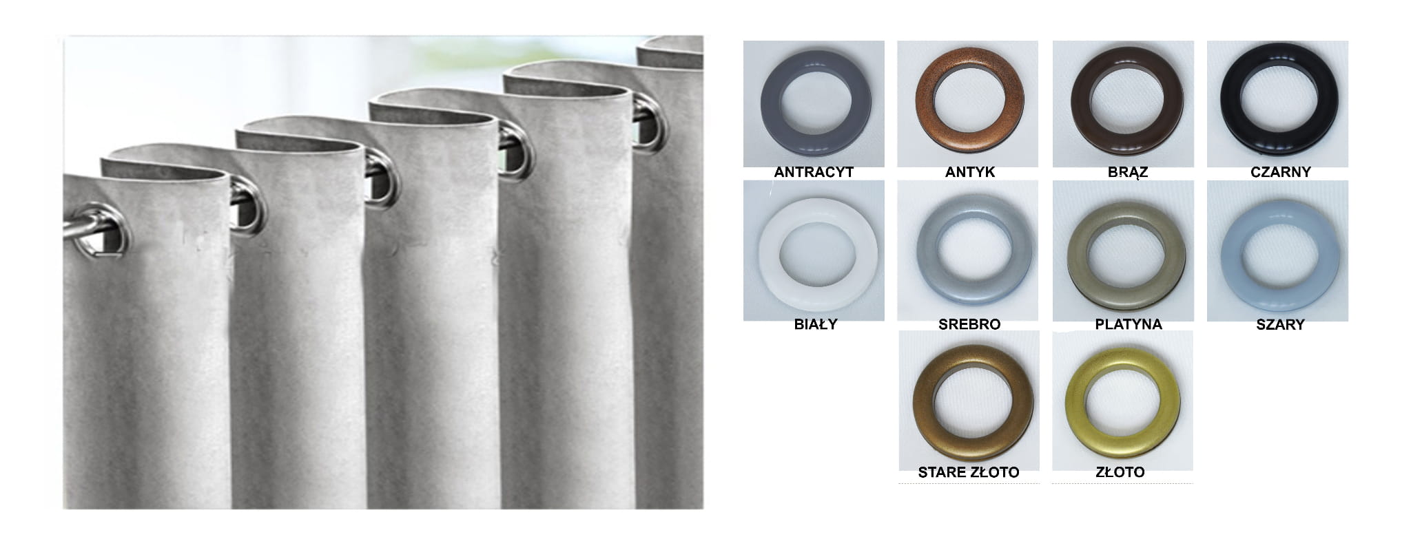 Standardowym marszczeniem (zalecającym) przy firanach na przelotkach jest marszczenie 1:2,5. Przelotki są wybijane co 20 cm i dedykowane są na pojedyncze karnisze lub podwójne bez zasłon.