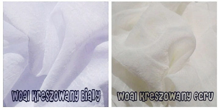 Woal Kreszowany - jest to tradycyjna firana, nadal bardzo popularna wśród kupujących, materiał jest gęsto kreszowany przez co tworzy ładny efekt, nasz woal jest materiałem lejącym przez co bardzo ładnie się układa w ułożeniu firany na przelotkach