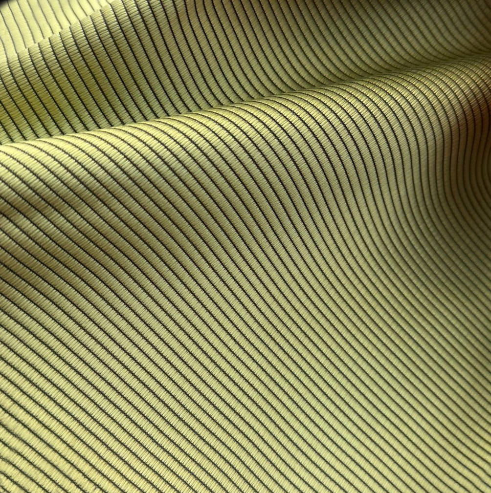 Tkanina dekoracyjna o charakterystycznym wzorze z zielone paseczki. Gęsty, mocny splot materiału zapewnia dobre osłonięcie wnętrza przed promieniami słonecznymi. Wszystkie te właściwości sprawiają, że jest to materiał szczególnie praktyczny i często stosowany na zasłony i inne elementy dekoracji wnętrza.