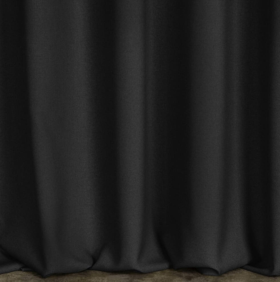 Dekoracyjna tkanina w czarnym kolorze. Miękka i przyjemna w dotyku, dobrze się układa, zapewniając komfort użytkowania. Włókna poliestrowe sprawiają, iż tkanina jest trwała i łatwa w pielęgnacji. Idealna do zastosowania jako zasłony, a także inne tekstylne dodatki do wnętrz.