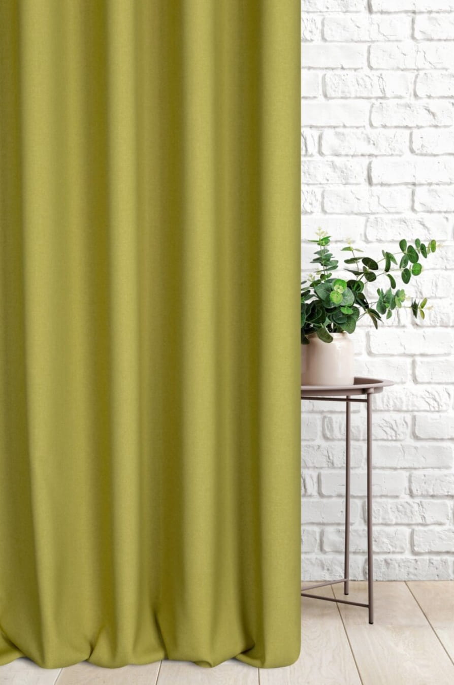 Dekoracyjna tkanina w pięknym zielonym kolorze. Miękka i przyjemna w dotyku, dobrze się układa, zapewniając komfort użytkowania. Włókna poliestrowe sprawiają, iż tkanina jest trwała i łatwa w pielęgnacji. Idealna do zastosowania jako zasłony, a także inne tekstylne dodatki do wnętrz.