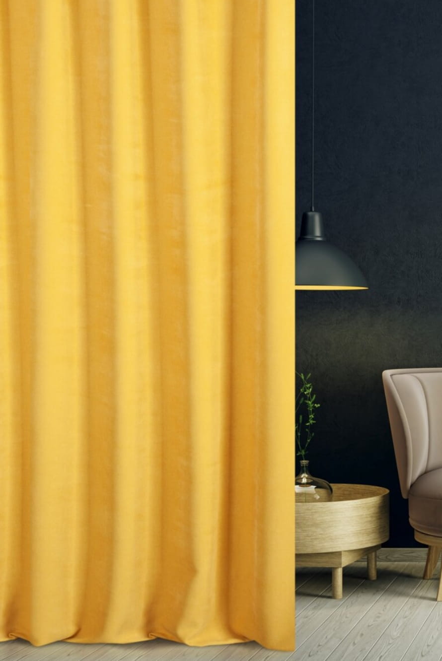 Zasłona w pięknym musztardowym kolorze wprowadzi energię i radosny nastój do każdego pomieszczenia. Tkanina dobrze się układa zapewniając komfort użytkowania. Materiał subtelnie filtruje światło słoneczne, tworząc przytulną atmosferę, co sprzyja relaksowi i zapewnia prywatność. Włókna poliestrowe sprawiają, iż tkanina jest trwała i łatwa w pielęgnacji.