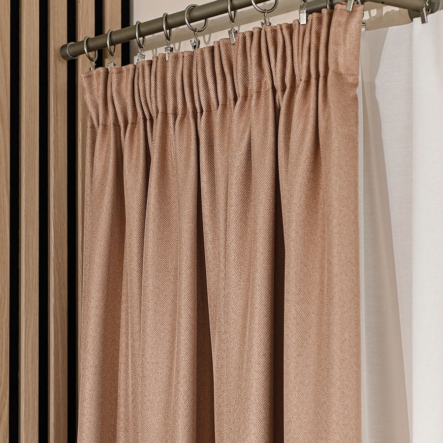 Zasłona JODEŁKA na taśmie to doskonały wybór, który w prosty sposób doda klasy każdemu pomieszczeniu. Miękka, przyjemna w dotyku tkanina wprowadza do wnętrza ciepły, przytulny klimat. Wzór jodełki w połączeniu z ciemnobeżowym kolorem doskonale komponuje się zarówno z nowoczesnymi, jak i klasycznymi aranżacjami.