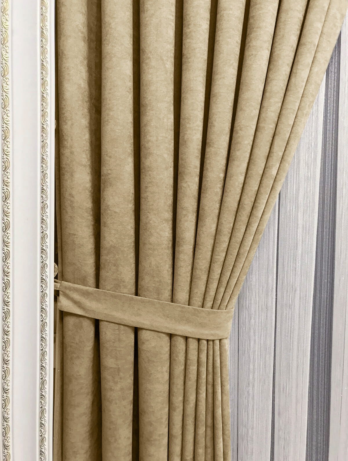 Zasłona Gotowa na Wymiar Velvet Milan Beżowy przelotki taśma