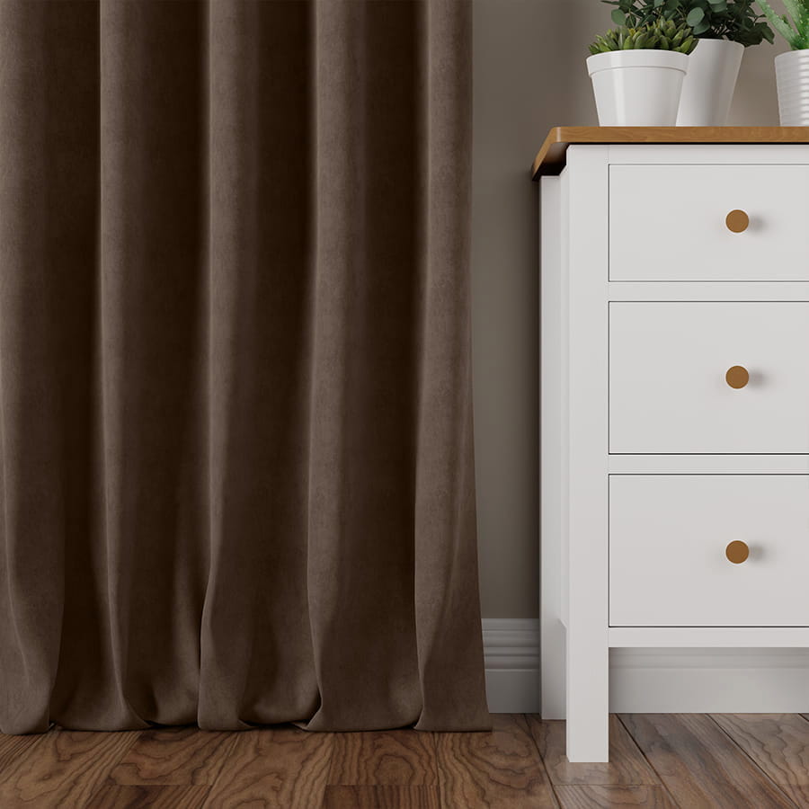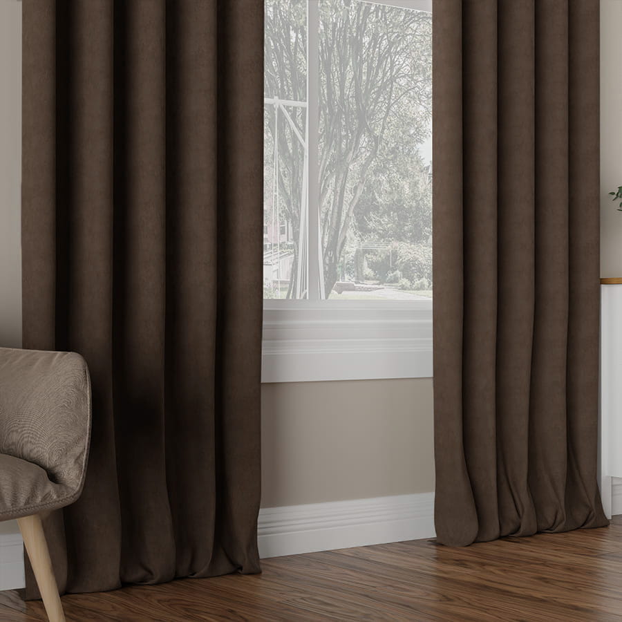 Zasłona Gotowa na Wymiar Velvet Milan Brązowy przelotki taśma
