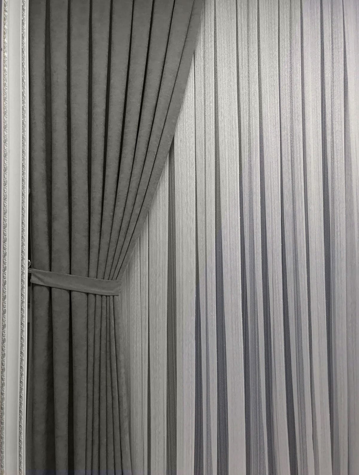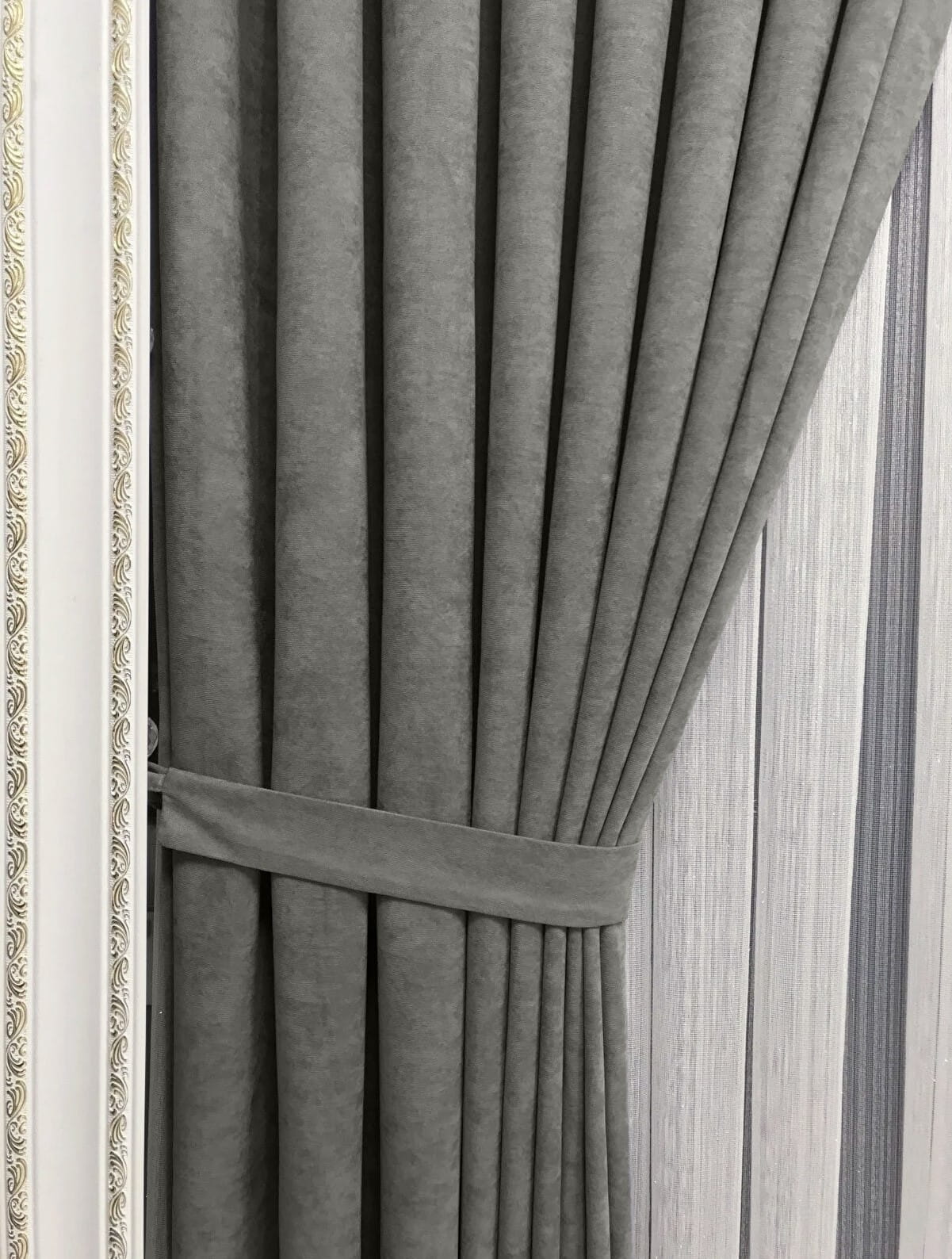 Zasłona Gotowa na Wymiar Velvet Milan Szary przelotki taśma