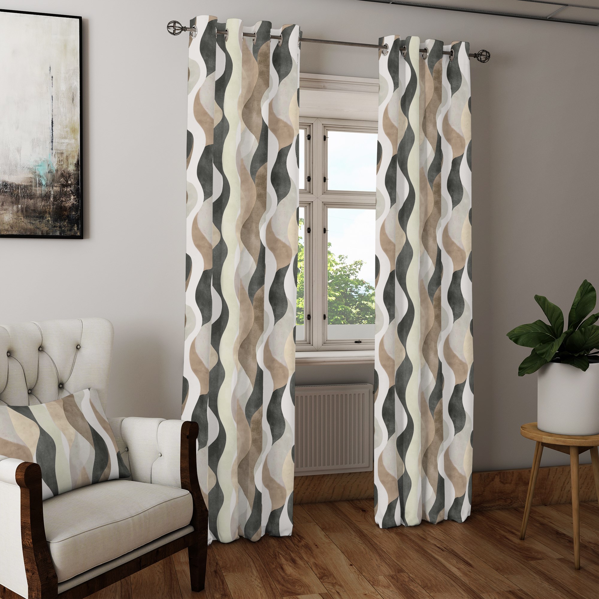 Zasłona Gotowa na wymiar Beżowo-Brązowa Fala szer. 145 cm taśma przelotki