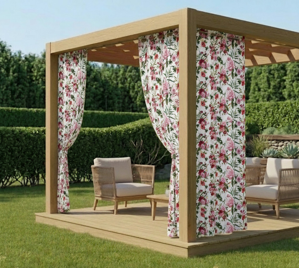 Zasłona wykonana z tkaniny wodoodpornej z nadrukiem jednostronnym. Doskonale sprawdzi się zarówno w ogrodzie, na tarasie czy balkonie. Żywe, ładne kolory zachowują intensywność przez długi czas, a wysoka jakość materiału zapewnia ochronę przed zmiennymi warunkami atmosferycznymi.