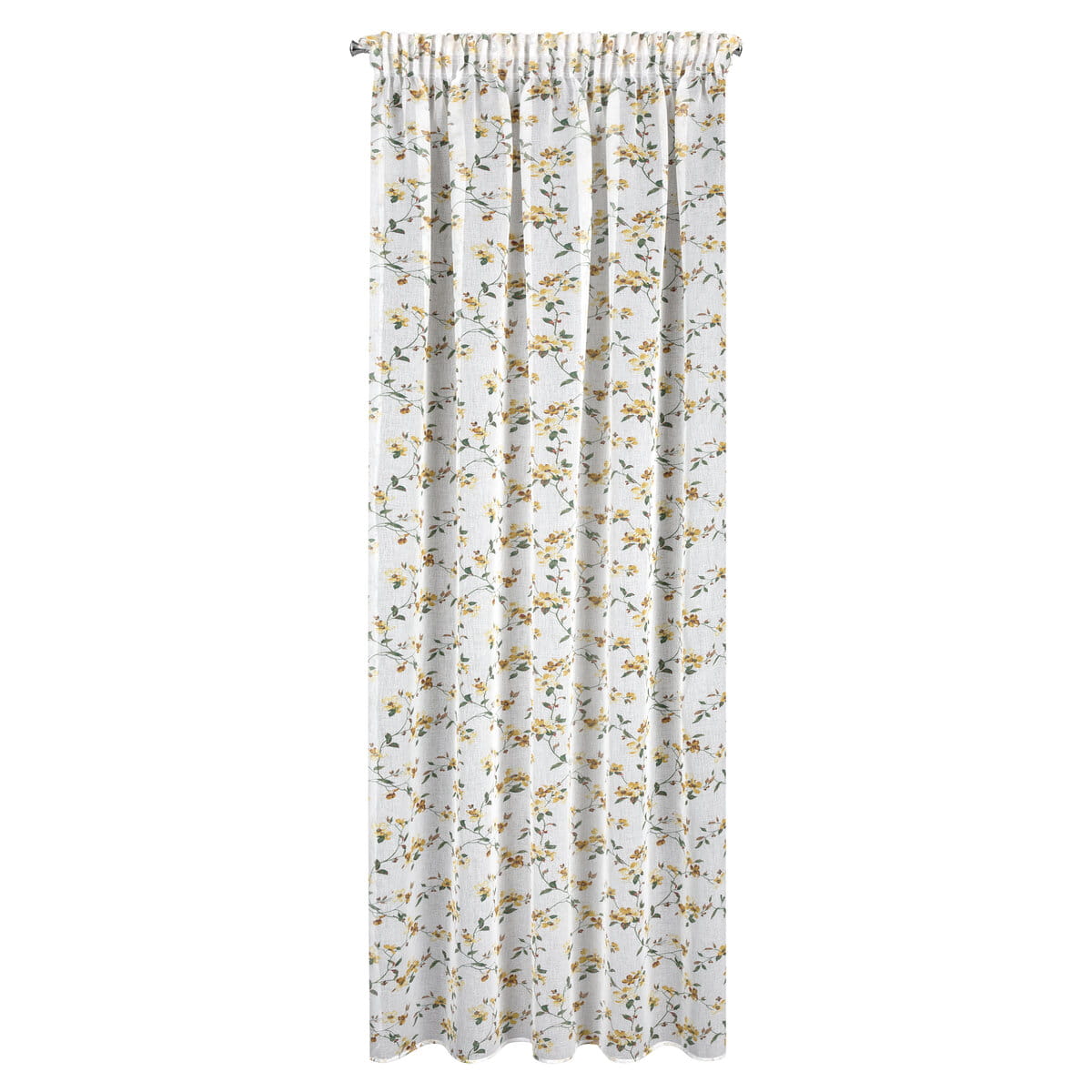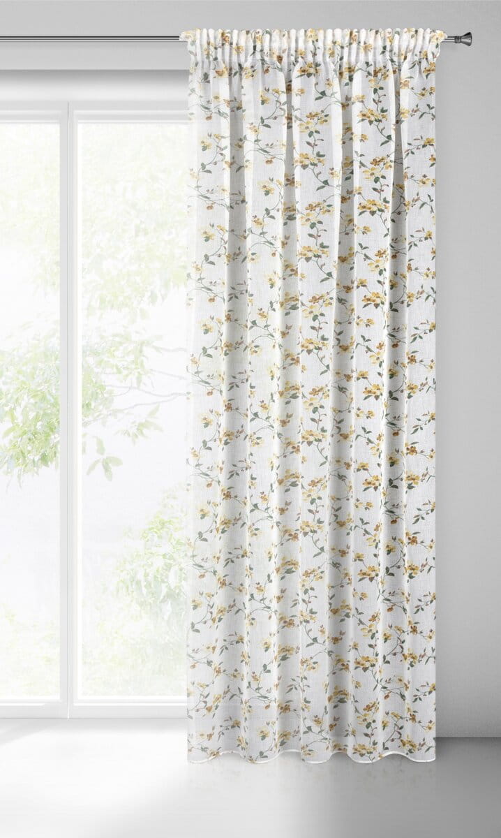 Zasłona Gotowa z lekkiej etaminy w stylu eko z motywem kwiatowym