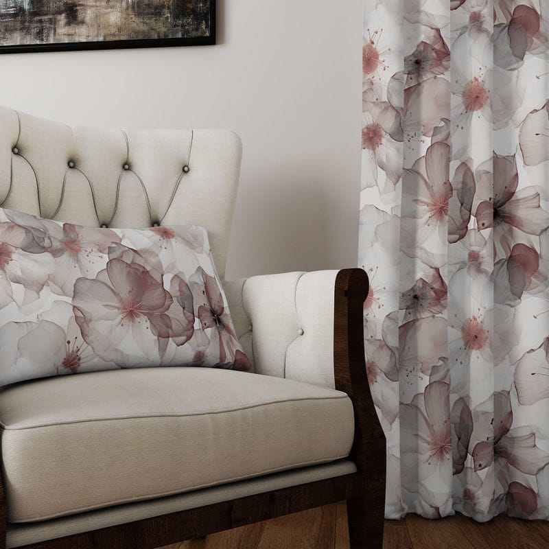 Zasłona gotowa na wymiar przelotki taśma Różowe Kwiaty
