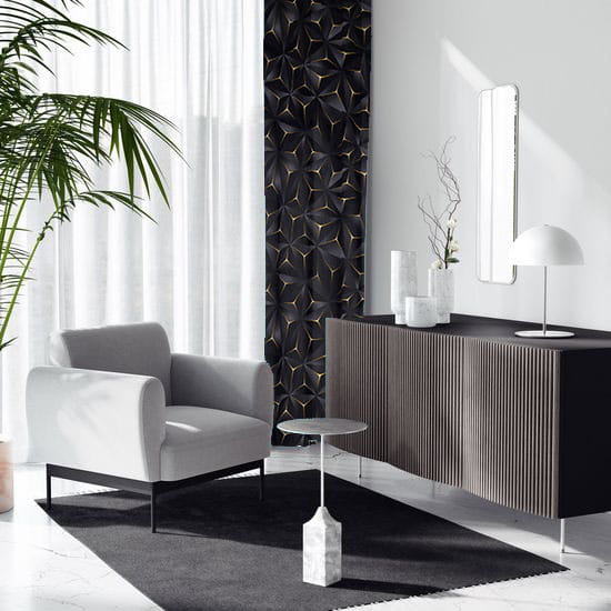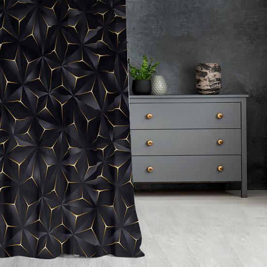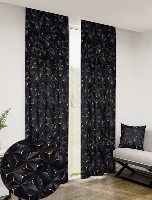 Zasłona gotowa na wymiar przelotki taśma Trójkąt Czarno-Złoty Trójwymiarowy