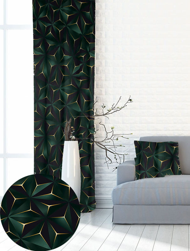 Zasłona gotowa na wymiar przelotki taśma Trójkąt Zielono-Złoty Trójwymiarowy