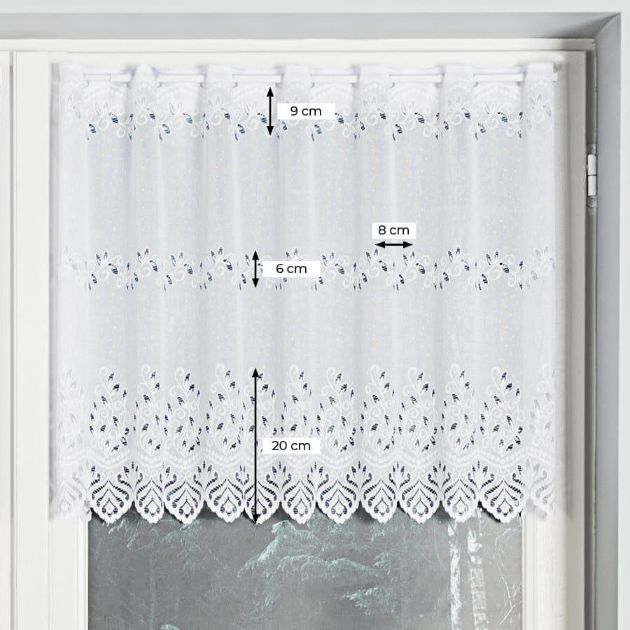 Zazdrostka żakardowa z dekoracyjnym wzorem pasowym to idealne połączenie klasycznej elegancji i funkcjonalności, które natychmiast odmieni każde okno.