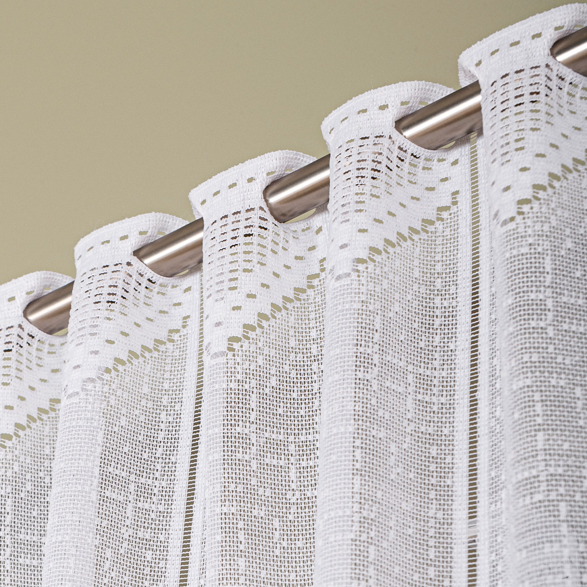 Zazdrostka żakardowa z dekoracyjnym geometrycznym wzorem to doskonałe rozwiązanie dla osób ceniących elegancję połączoną z funkcjonalnością. Materiał subtelnie osłania okno, nie ograniczając dostępu naturalnego światła. Włókna poliestrowe sprawiają, iż tkanina jest trwała i łatwa w pielęgnacji. Nie wymaga prasowania-po praniu wystarczy wilgotną firanę zawiesić na karniszu.